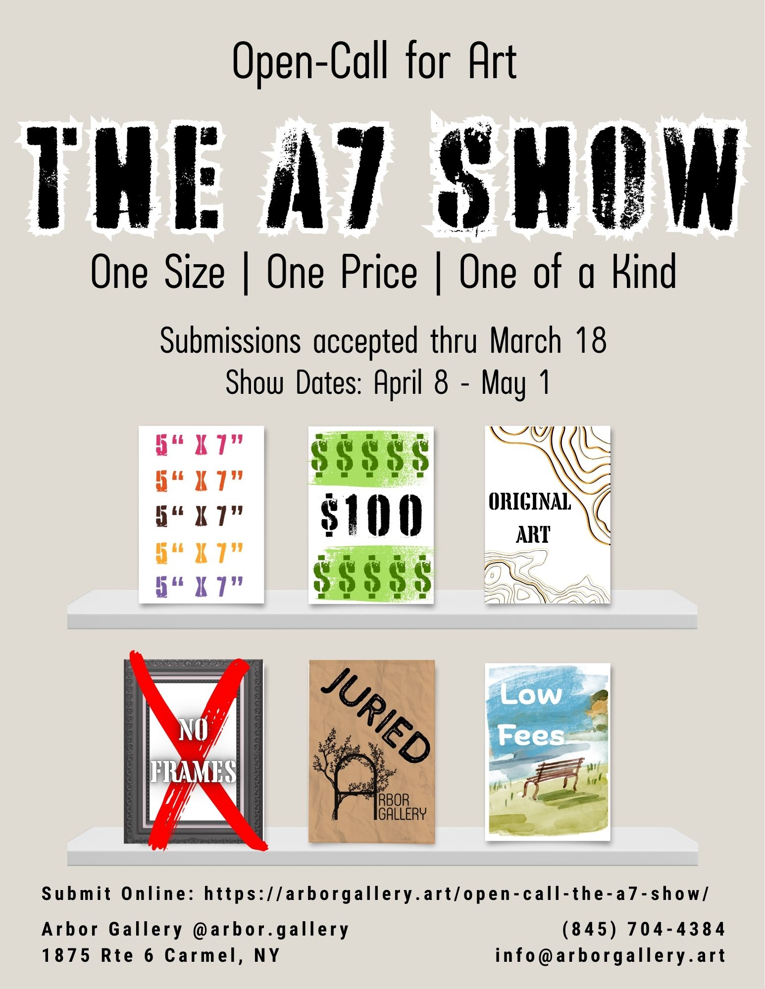 Calling all artists who love a good creative constraint. The A7 Show is our juried celebration of tiny originals with big personality. Every piece in the show is the same size (5 x 7), the same price ($100), and completely unique. Think of it as a wall of irresistible mini-treasures: approachable for first-time collectors, dangerous for impulse buyers, and wildly fun to browse.