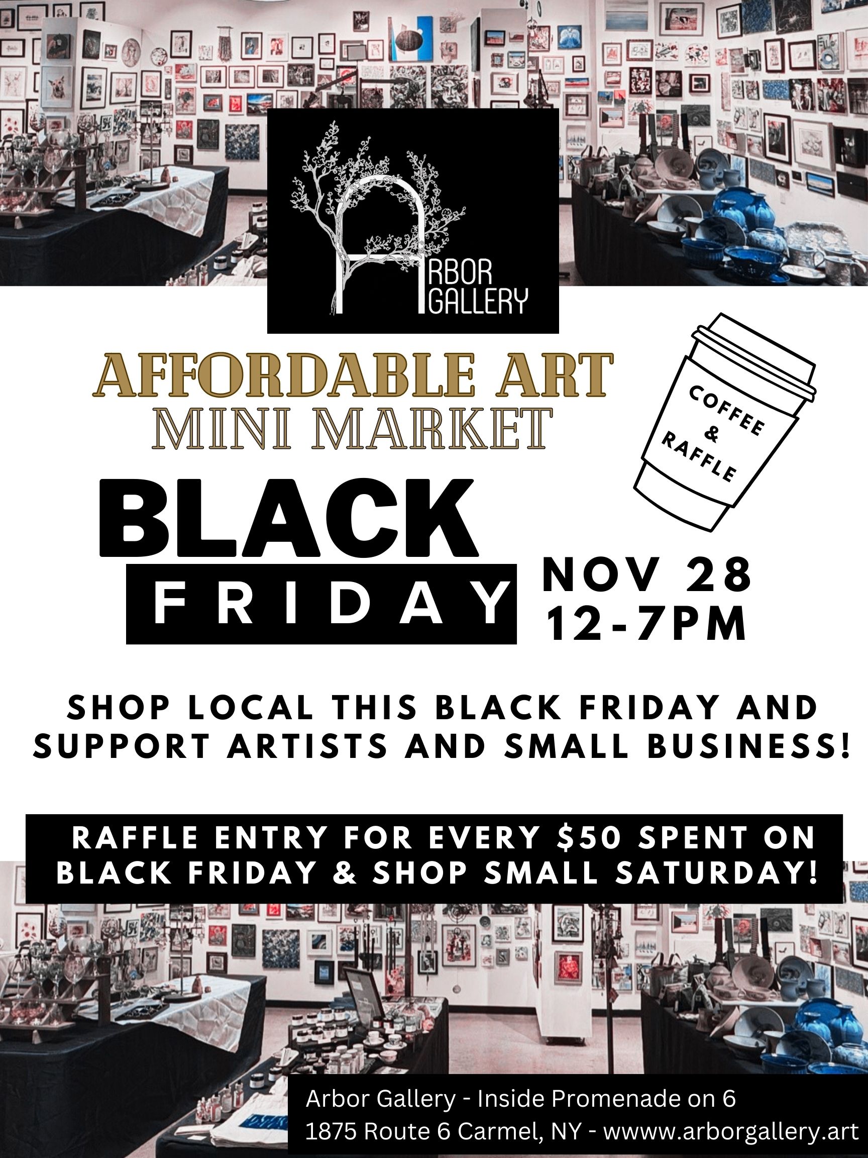We will be serving complimentary coffee while you shop and you can enter our Affordable Art Weekend Raffle.