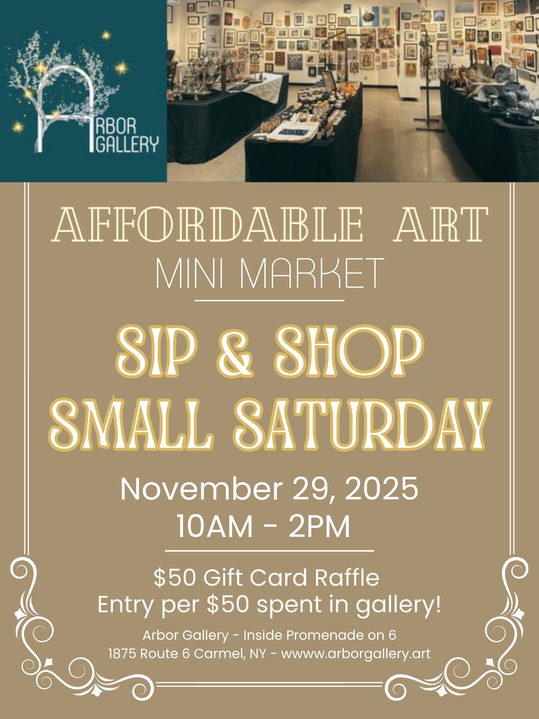 For every $50 you spend in the gallery on Black Friday and Shop Small Saturday, you will receive one entry into a raffle for a $50 Arbor Gallery gift card. The more you shop, the more chances you have to win. Purchases from any artist or artisan in the Mini Market count toward your entries.